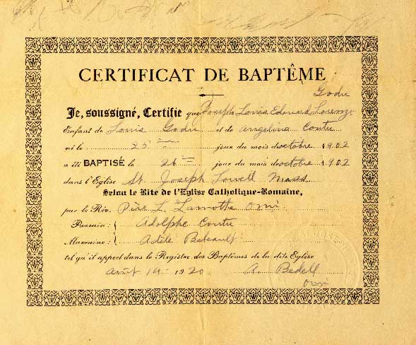 Joseph Louis Edouard Lorenzo Godu was his Baptized name he went by the name of Lorenzo Joseph Goddu.